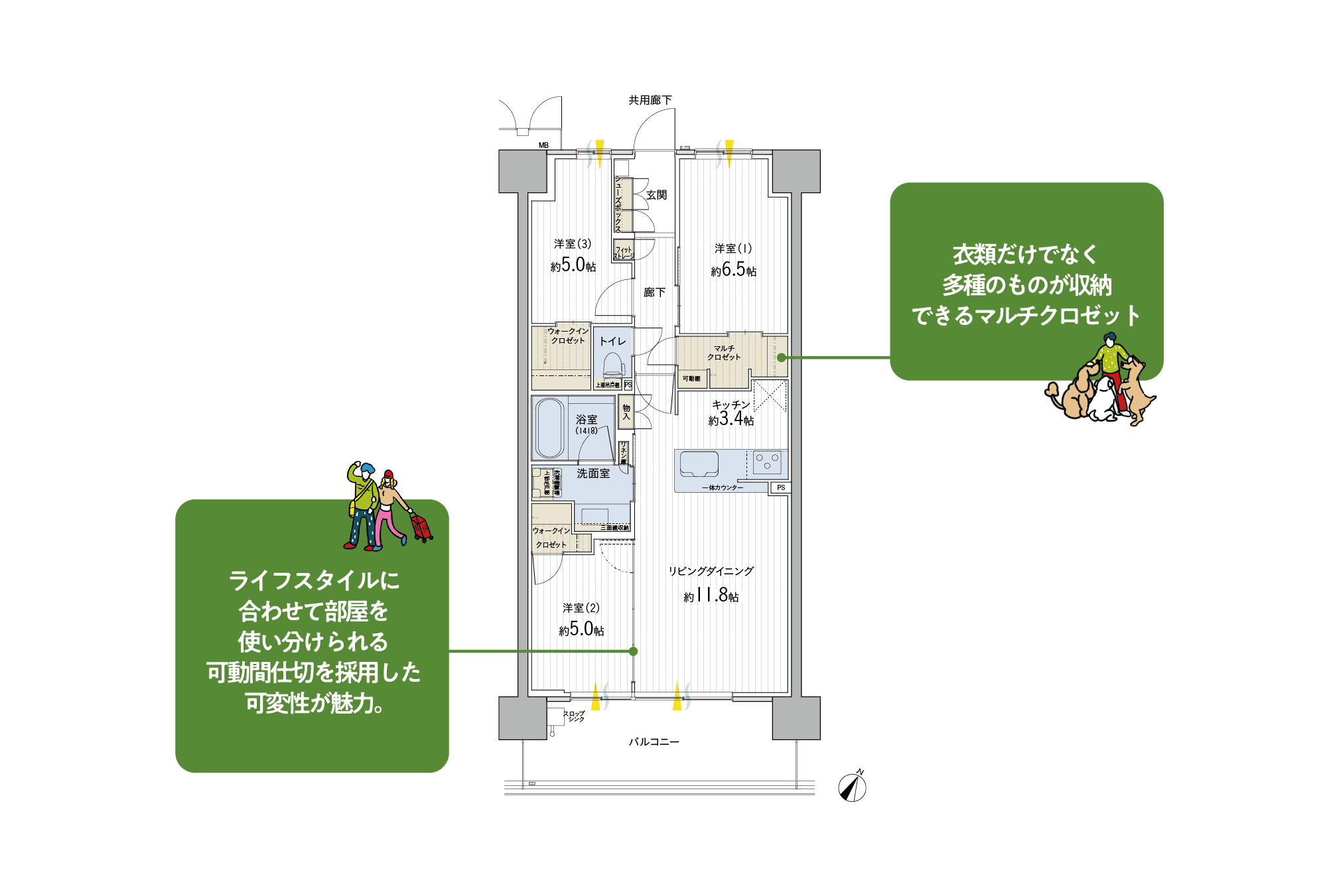 WIC:ウォークインクロゼット MC:マルチクロゼット